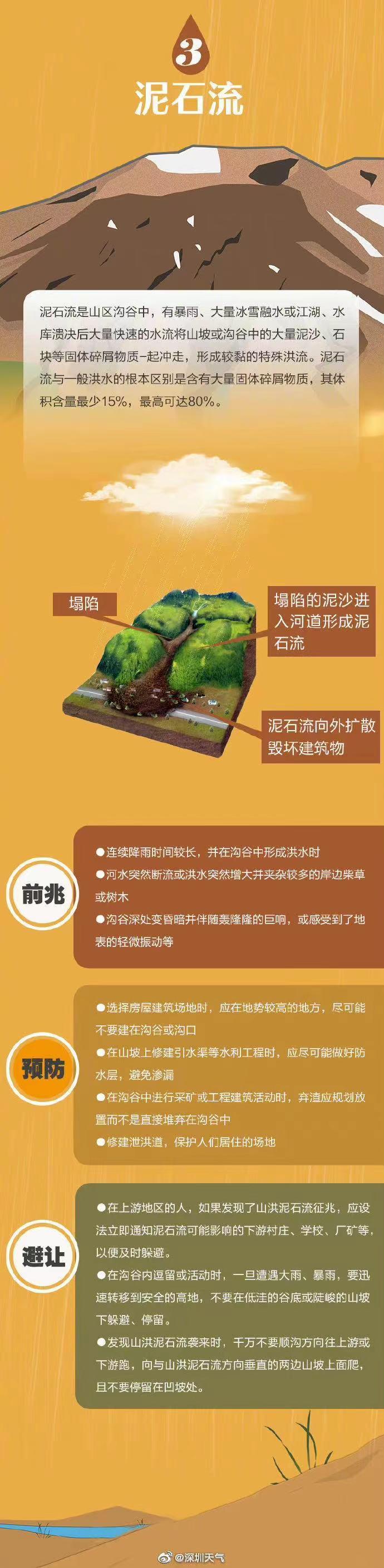 所以,深圳現(xiàn)已發(fā)布的地質(zhì)災(zāi)害氣象風(fēng)險(xiǎn)橙色預(yù)警,表示24小時(shí)內(nèi)地質(zhì)災(zāi)害發(fā)生的風(fēng)險(xiǎn)高。其中地質(zhì)災(zāi)害主要包括滑坡、崩塌和泥石流等。