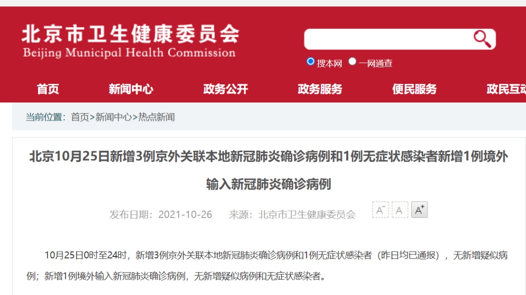 10月25日0時(shí)至24時(shí),新增3例京外關(guān)聯(lián)本地新冠肺炎確診病例和1例無癥狀感染者,無新增疑似病例;新增1例境外輸入新冠肺炎確診病例,無新增疑似病例和無癥狀感染者。