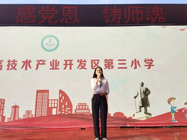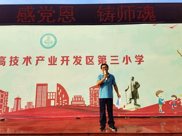 接著,三小黨支部書記劉光旗校長作了熱情洋溢的講話。他高度肯定和贊揚(yáng)全體教師對開發(fā)區(qū)三小教育教學(xué)發(fā)展的付出,表示任何人的成長成才,社會的每一次進(jìn)步,都離不開老師的辛勞和奉獻(xiàn)。他呼吁全體教職工要向時代楷模黃大年老師學(xué)習(xí),時刻牢記“為黨育人、為國育才”的使命,在今后的工作中立足各自的崗位,齊心協(xié)力,積極進(jìn)取,培養(yǎng)更多能夠擔(dān)當(dāng)民族復(fù)興大任的時代新人。