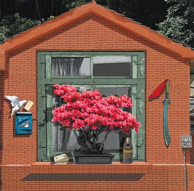 安徽省六安市霍山縣諸佛庵鎮(zhèn)丙烯壁畫《窗前的杜鵑花》,中國(guó)美術(shù)學(xué)院繪畫藝術(shù)學(xué)院師生集體創(chuàng)作。 |