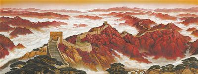 中國(guó)共產(chǎn)黨歷史展覽館漆壁畫《長(zhǎng)城頌》,作者程向軍。 |