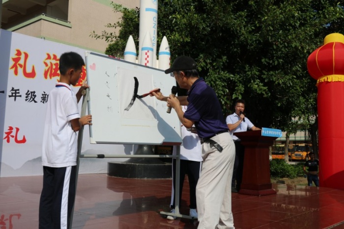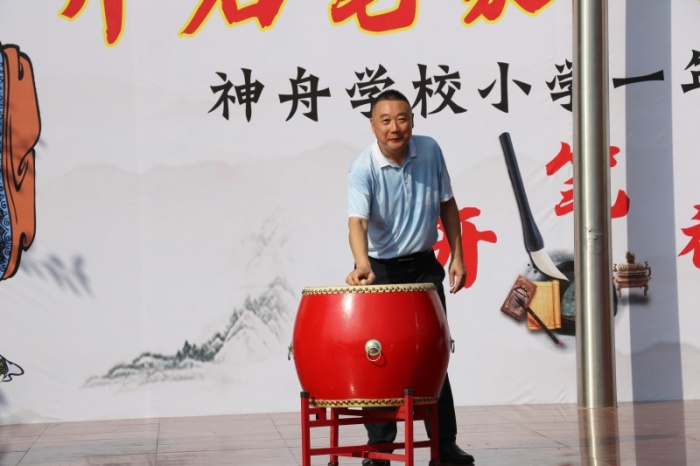 活動開始,一年級的新同學(xué)們就在父母的陪伴下穿過“智慧門”,進入會場。接著神舟學(xué)校德育處韋德敏主任宣布“開筆禮”活動正式開始。神舟學(xué)校高華副校長首先致詞,高華校長表示:今天我們結(jié)合時代的特點,古為今用,古今結(jié)合,并有所創(chuàng)新地舉行開筆禮儀式,目的就是想通過這種莊重的儀式,讓剛?cè)雽W(xué)的一年級小朋友真正感受到入學(xué)是人生中的一件大事,是開始學(xué)習(xí),走向成才的起點,要以此激勵同學(xué)們珍惜讀書機會、勤奮學(xué)習(xí);同時又通過這種特別的方式弘揚我國優(yōu)良的傳統(tǒng)文化。高華校長講話結(jié)束后,主持人又組織大家依次開展了“正衣冠”、行“拜師禮”、點朱砂啟智、擊鼓明智及啟蒙描紅活動,這五個頗具歷史傳統(tǒng)意義的環(huán)節(jié),讓孩子們感受到了傳統(tǒng)文化的魅力。